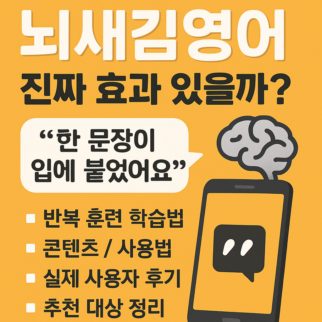 🧠 뇌새김영어, 진짜 효과 있을까? 사용법부터 후기까지 총정리!영어는 꾸준한 반복과 뇌에 남는 학습이 핵심입니다.이런 점에서 요즘 많은 사람들이 주목하는 ‘뇌새김영어’!이번 글에서는 학습법, 구성, 사용법, 후기, 추천 대상까지알아두면 좋은 정보를 한눈에 정리해드릴게요.1️⃣ 뇌새김영어란? – 반복 훈련으로 기억에 새기는 영어학습기뇌새김영어는 ‘보고 듣고 따라 말하며 반복’하는 방식으로영어 표현을 장기 기억에 새기도록 설계된 전자학습기입니다.📌 주요 특징:영어 발음 → 따라 말하기 → 즉각 피드백뇌파 리듬에 맞춘 반복학습으로 암기 지속력 강화회화 중심 학습 + 직관적인 UI2️⃣ 뇌새김영어 학습 구성 – 회화, 단어, 문장까지 체계적 구성✅ 콘텐츠 구성:회화 중심 표현: 상황별 생활영어단어+문장 반복..